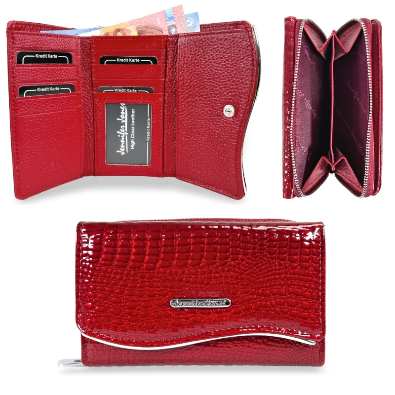 Jennifer Jones Női Bőr Pénztárca 5245-2 Piros - Lakk - Közepes Méret -