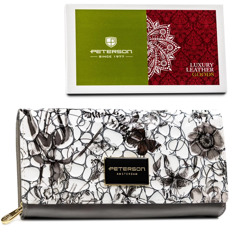 Női pénztárca valódi bőrből, virágmintával, RFID rendszerrel ellátva - Peterson