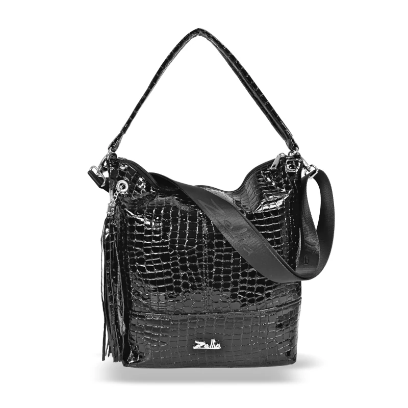 Zellia Női Válltáska Zlb213 Fekete Lakk - Krokkó -