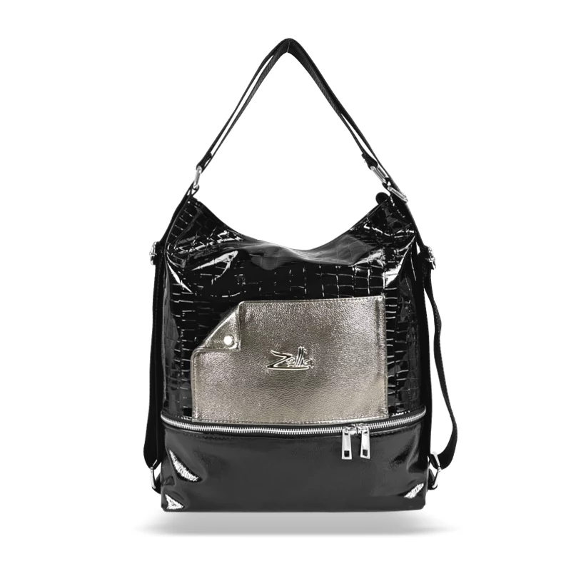 Zellia Női Válltáska/Hátizsáká Alakítható 24099 Fekete-Bronz - Lakk - Krokkó -